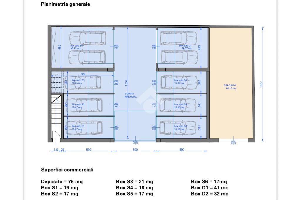 Il box auto in oggetto, identificato sulla planimetria come S1, dispone di una larghezza di circa 2,60 m e una lunghezza di circa 5,90 m, dimensioni che garantiscono un accesso comodo e la possibilità di ospitare veicoli di diverse tipologie.